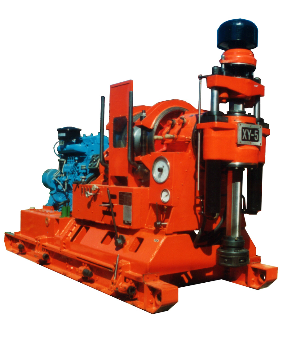 XY一5鉆機在地質找礦、水文水井、煤田冶金勘探開發、國防工程施工等方面可進行金剛石小口徑鉆進,也可進行大口徑鉆進,可以打垂直孔也可以打斜孔。