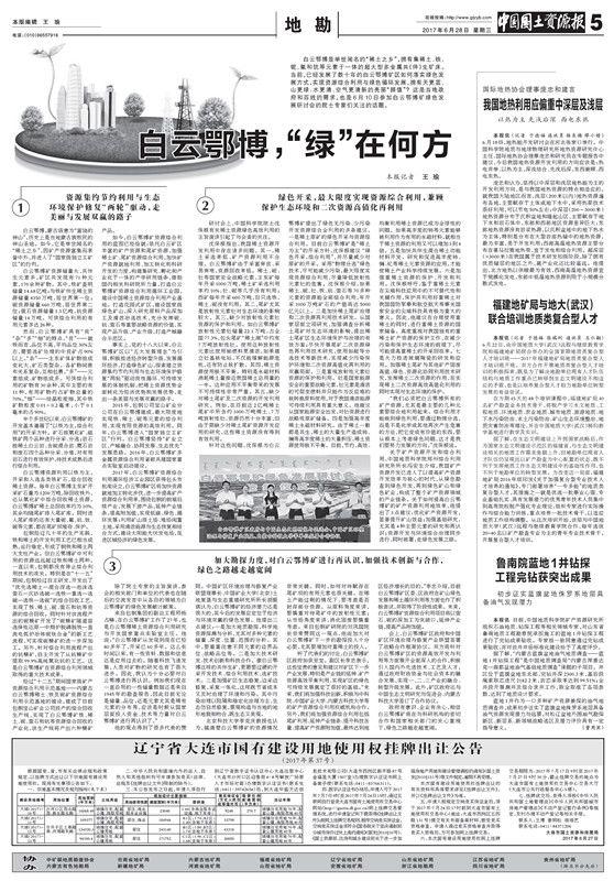 2017年6月28日《中國國土資源報》第5版《魯南院藍地1井鉆探工程完鉆獲突出成果》